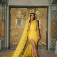 43-летняя Приянка Чопра позировала перед фотографом в желтом обтягивающем мини-платье с длинным шлейфом и золотых туфлях на каблуках. Актриса дополнила образ серьгами и кольцом. Знаменитости уложили распущенные волосы и сделали макияж с розовыми рунами и помадой.