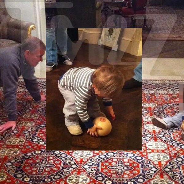 На обнародованных кадрах бывший принц стоит на четвереньках и перекатывает с ребенком мяч в форме женской груди. При этом игрушка имеет детализированное оформление, включая выступающий сосок.