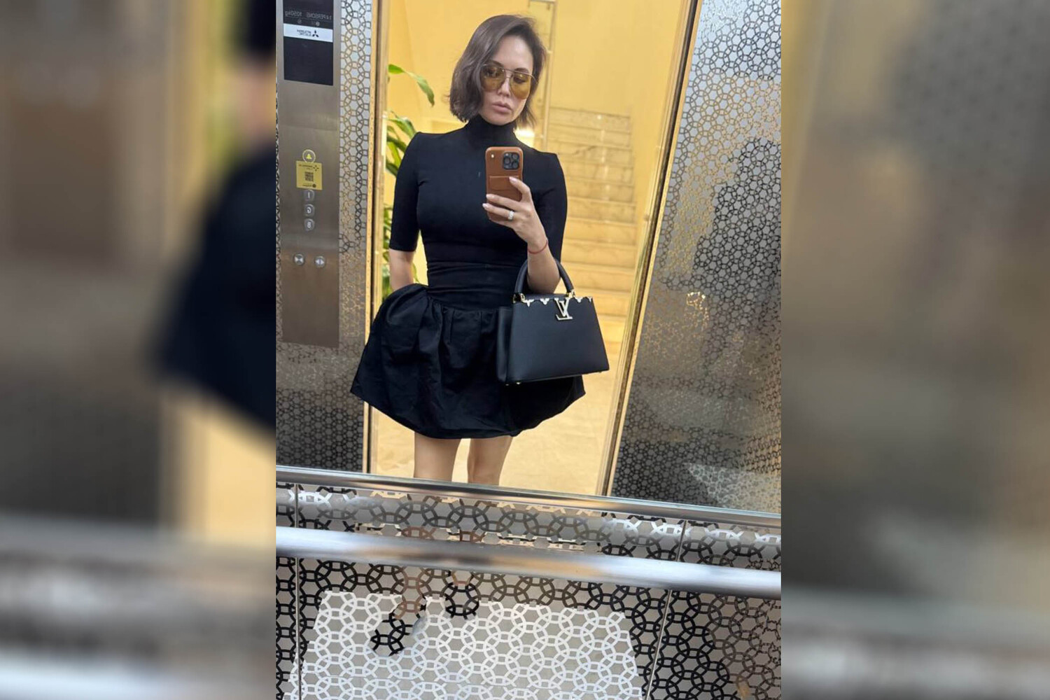 40-летняя Ляйсан Утяшева стояла перед зеркалом в черном облегающем топе, который сочетала с объемной мини-юбкой в тон. Телеведущая добавила к образу солнцезащитные очки с желтыми линзами, кольцо и кожаную сумку Louis Vuitton. Знаменитость позировала с уложенными распущенными волосами и макияжем в естественном стиле.