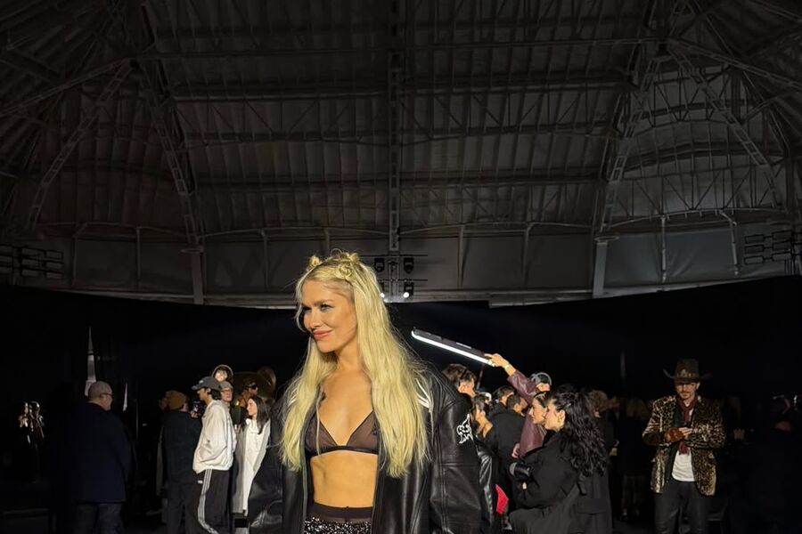 Елена Перминова посетила показ GCDS, который состоялся в рамках Недели моды в Милане. Модель пришла на мероприятие вместе с возлюбленной миллиардера Владислава Доронина Кристиной Романовой и блогершей Аллой Брулетовой. Манекенщица позировала перед фотографами в черном прозрачном бюстгальтере, кожаной куртке, блестящих коротких шортах, колготках и туфлях на платформе. Знаменитости уложили волосы и сделали макияж с черной подводкой и розовой помадой.