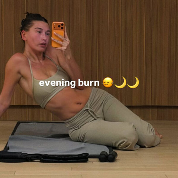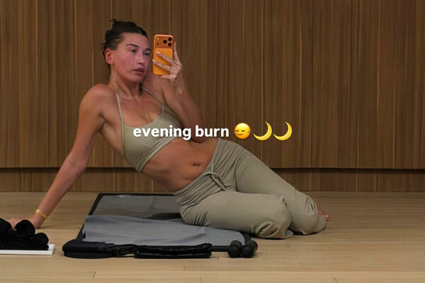29-летняя Хейли Бибер сидела перед зеркалом на коврике после тренировки. Модель была запечатлена в фисташковом топе и трениках. Манекенщица собрала волосы в небрежный пучок и отказалась от макияжа.