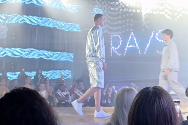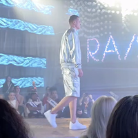 Футболист представил бренд RAIS на фэшн-показе. Дмитрий Тарасов появился на подиуме в серебряных шортах и бомбере. После выхода он присоединился к жене Анастасии Костенко на первом ряду показа.