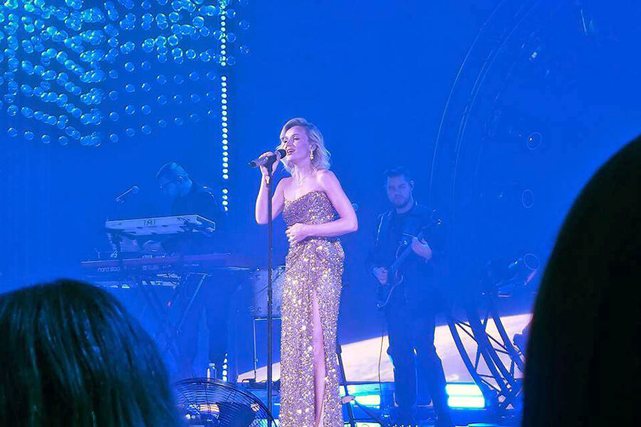 Полина Гагарина в золотом платье с разрезом до бедра спела на сцене