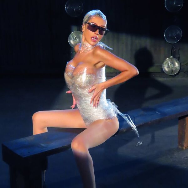 45-летняя Кристина Агилера была запечатлена в боди, обмотанном пищевой пленкой. При этом певица не стала надевать штаны. Поп-исполнительница добавила к образу белые колготки, туфли на каблуках и черные солнцезащитные очки. Знаменитости также убрали волосы под пленку и сделали макияж с розовым блеском для губ.