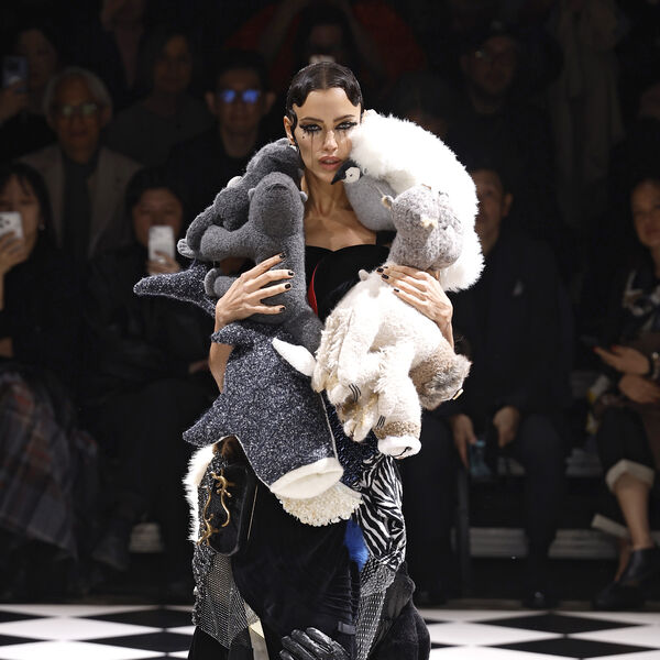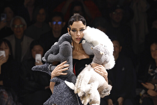 40-летняя Ирина Шейк приняла участие в показе новой коллекции бренда Junya Watanabe в рамках Недели моды в Париже. Супермодель открыла шоу, появившись в черном платье-миди с объемной юбкой, легинсах и туфлях с шипами. Манекенщица также примерила платье с накидкой из мягких игрушек. Знаменитости уложили волосы и сделали макияж с эффектом «заплаканных глаз».