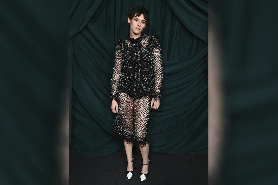 35-летняя Кристен Стюарт посетила 17-й ежегодный ужин Chanel, приуроченный к церемонии вручения премии «Оскар». Актриса выбрала для закрытого мероприятия черный прозрачный костюм, который состоял из жакета и юбки. Артистка дополнила образ боди и туфлями на каблуках.