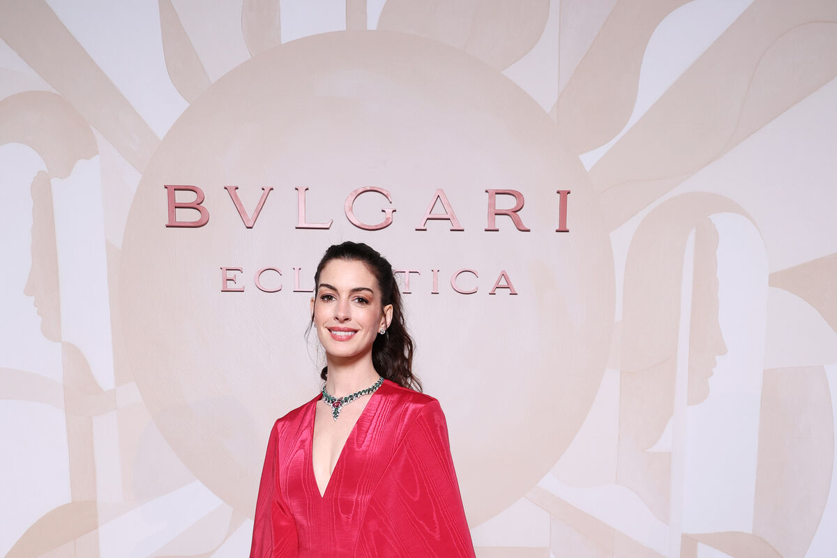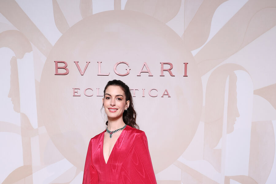 Энн Хэтэуэй посетила показ новой коллекции высокого ювелирного искусства Bvlgari, который состоялся в Милане. Для закрытого светского мероприятия актриса выбрала красное макси-платье с пышной юбкой и глубоким декольте. Артистка добавила к наряду массивное колье с изумрудами, серьги, кольцо и золотой блестящий клатч. Знаменитости собрали волосы в высокий хвост с прядями у лица и сделали вечерний макияж.