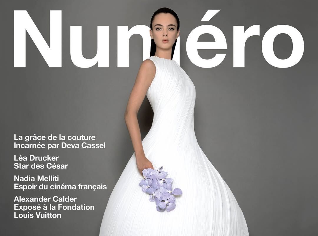 21-летняя Дева Кассель стала лицом нового выпуска журнала Numéro. На обложке модель предстала в белом макси-платье с объемной юбкой, украшенной бантом. Манекенщица также надела зеленые туфли на каблуках. Звезде подиумов уложили волосы и сделали макияж с черными стрелками. Дева Кассель позировала с орхидеей в руке.