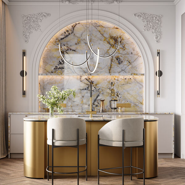 «Речь идет о шпоне, натуральном и даже полудрагоценном камне, а также о многослойных поверхностях, включающих как природные материалы и элементы, так и различного рода смолы, создающие неповторимый визуальный эффект. Все эти материалы не только обладают инновационными качественными характеристиками, но и позволяют оформить пространство, которое по-настоящему впечатляет», — отметила эксперт.