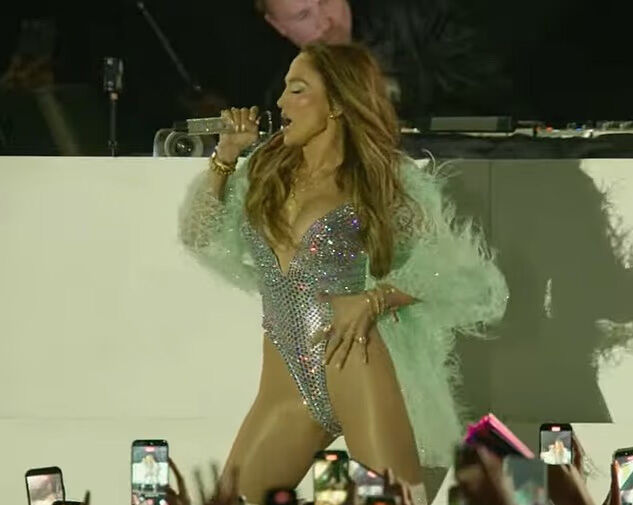 Певица и актриса Дженнифер Лопес в сияющем боди вышла на сцену. Фото опубликованы на сайте Daily Mail.