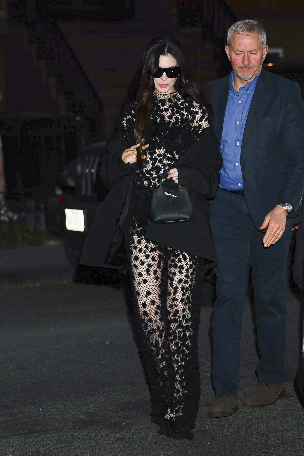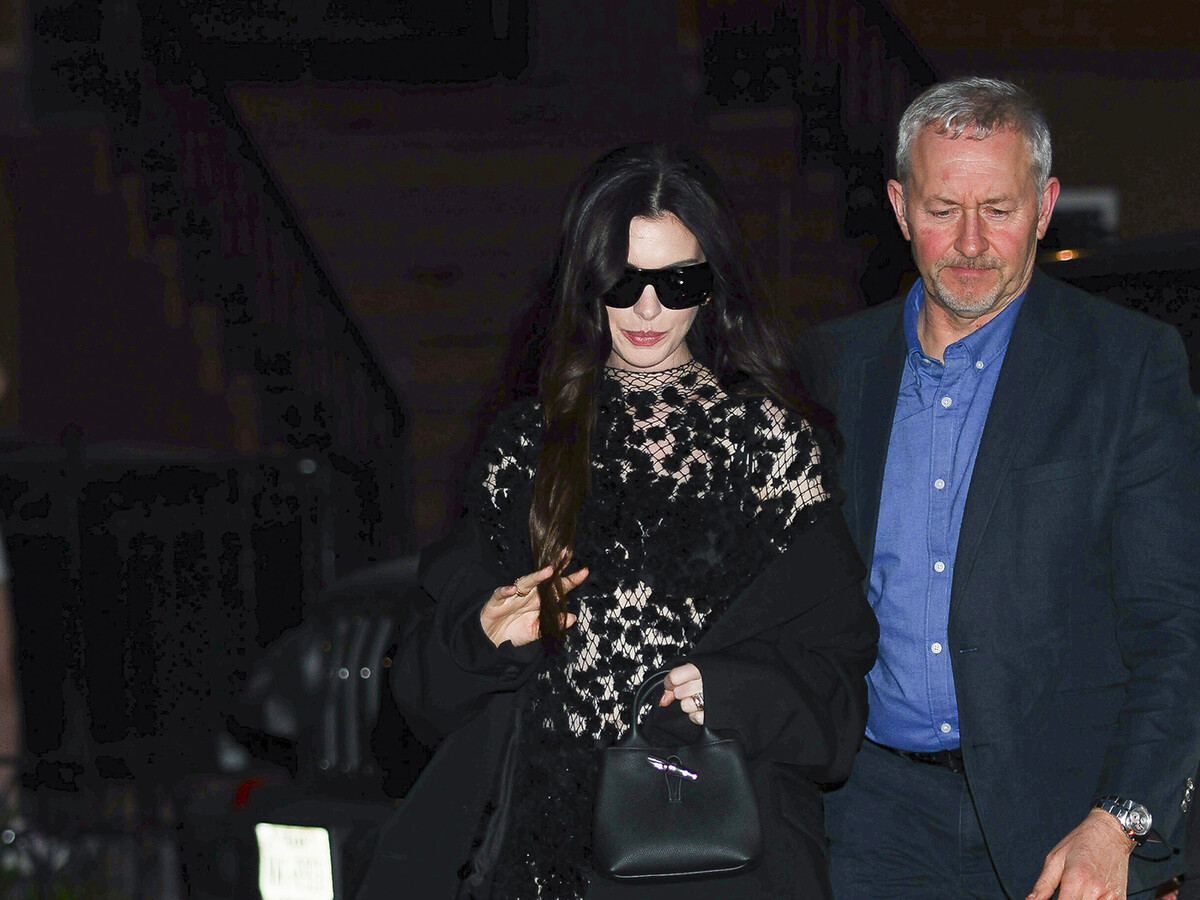 Папарацци подловили 43-летнюю Энн Хэтэуэй 14 апреля в Нью-Йорке. Актриса направлялась на вечеринку по случаю презентации фильма «Мать Мария», где сыграла главную роль. Артистка позировала перед фотографами в черном прозрачном платье-сетке, спущенном пальто и туфлях на каблуках. Знаменитость добавила к образу солнцезащитные очки, сумку и кольца. Энн Хэтэуэй уложили волосы в локоны и сделали макияж в естественных тонах.