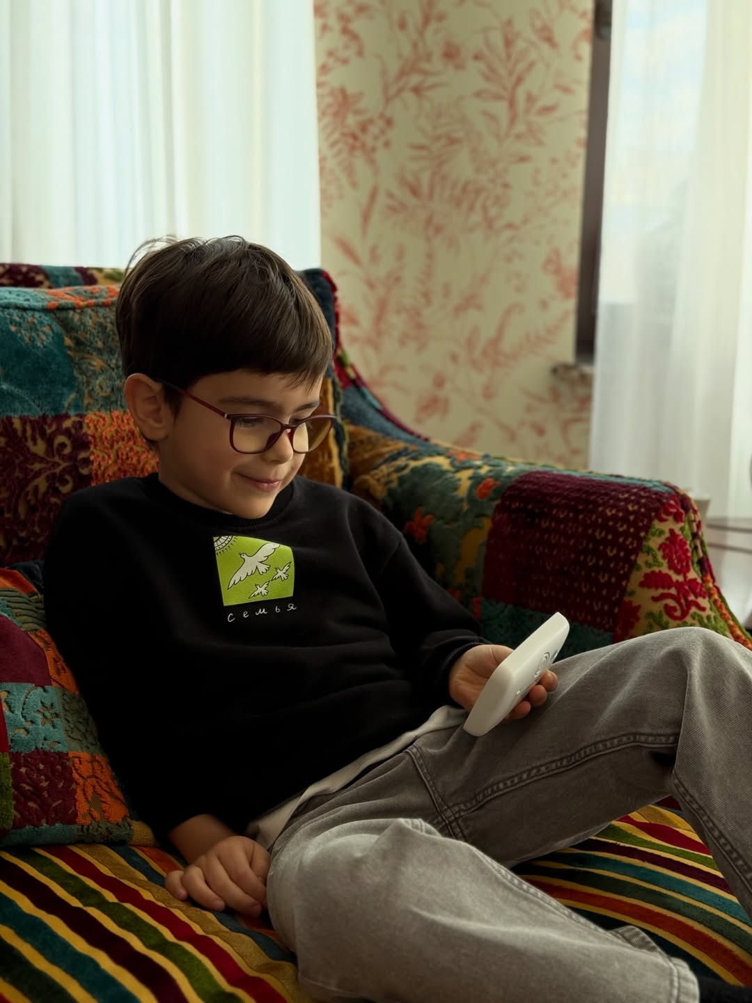 Татьяна Брухунова показала редкое фото сына Вагана, который сидел в кресле в домашнем интерьере.
