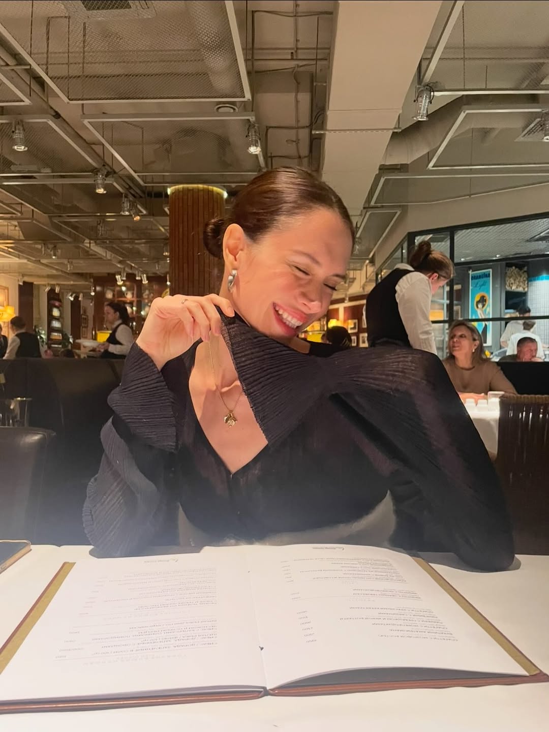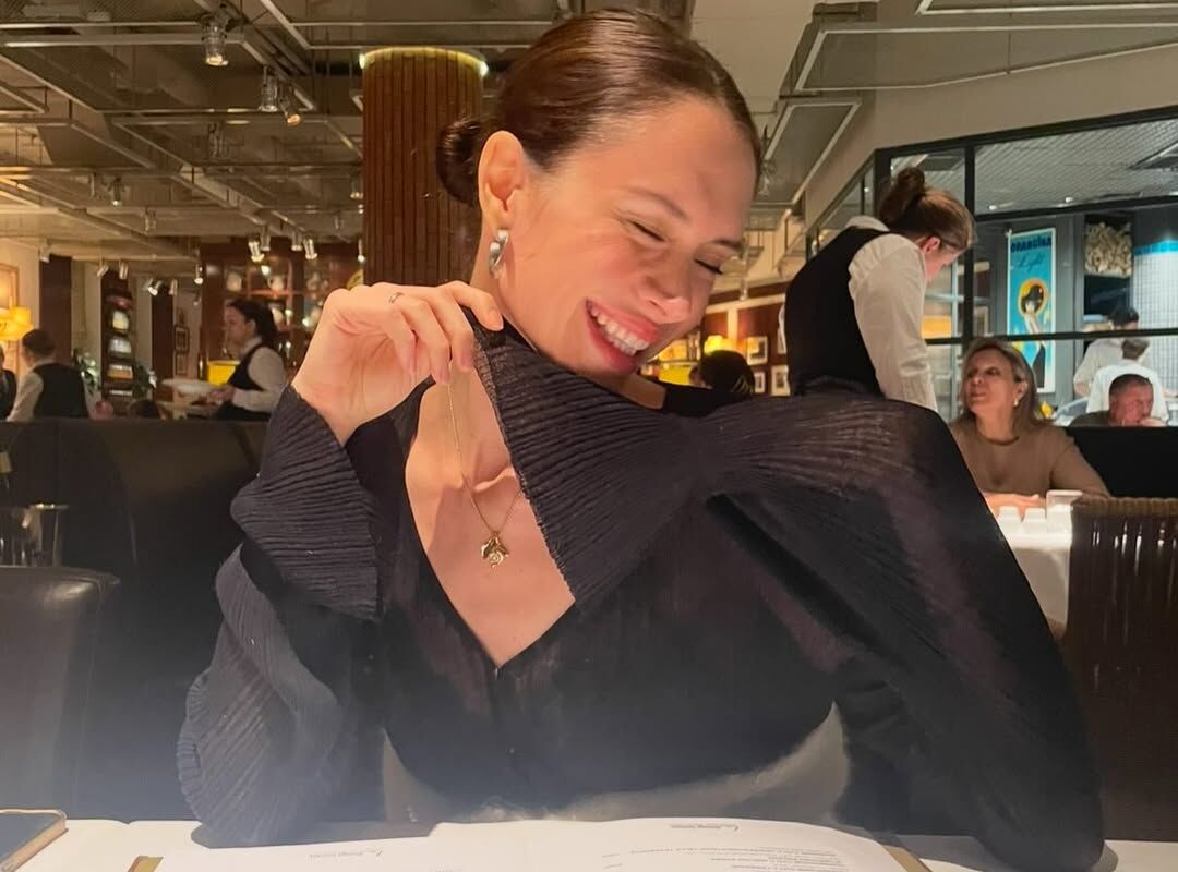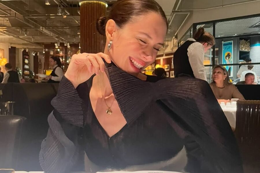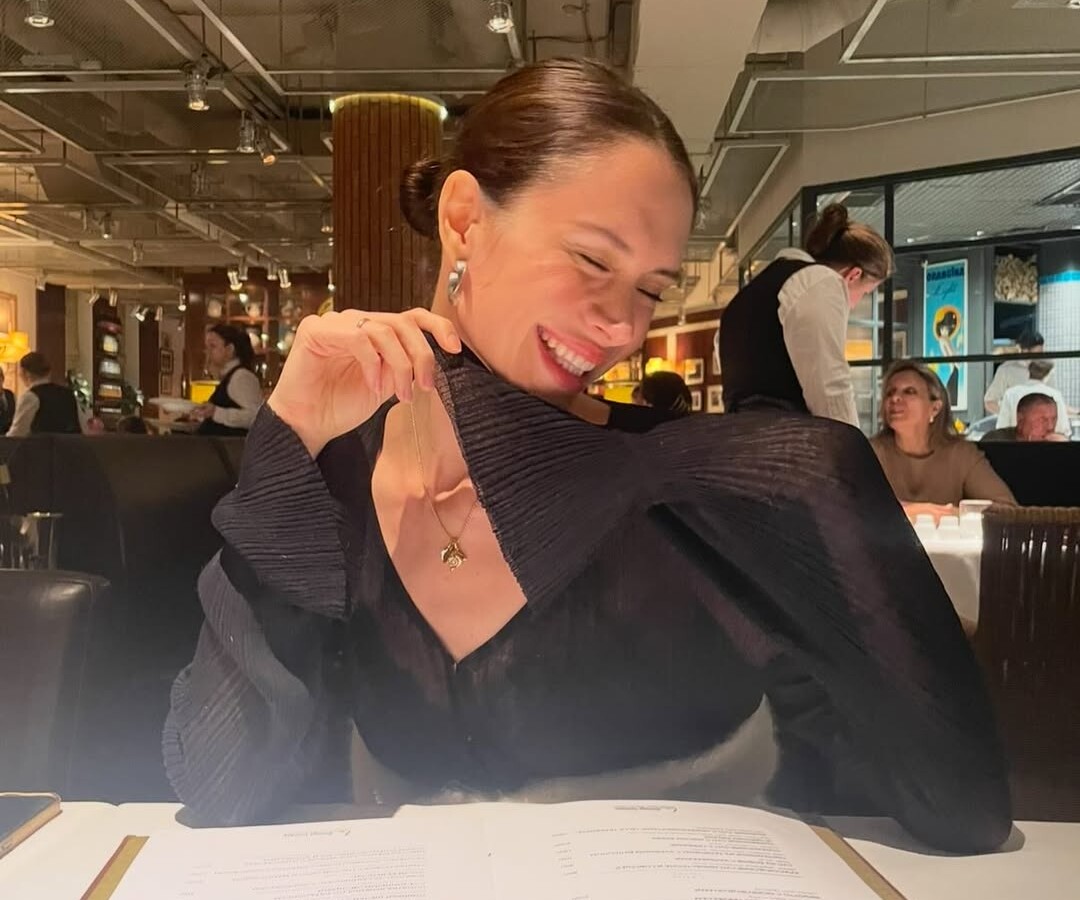 34-летняя Диана Пожарская была запечатлена за столом в ресторане. Актриса позировала в черной полупрозрачной блузе с декольте, золотой цепочке с кулоном и массивных серьгах. Артистка предстала в кадре с уложенными в пучок волосами и макияжем в естественном стиле.