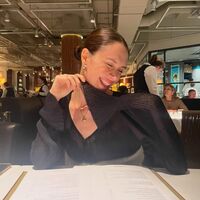 В феврале Диана Пожарская выложила фото, где стояла перед зеркалом в бежевом макси-платье с облегающим верхом, которое дополнила золотым кольцом. Актриса позировала с распущенными волосами и макияжем в естественном стиле в примерочной.
