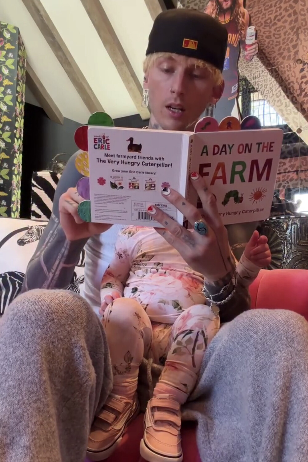 Machine Gun Kelly показал редкое видео с дочерью от Меган Фокс в честь своего 36-летия. Рэпер держал дочь на руках и читал ей книжку.