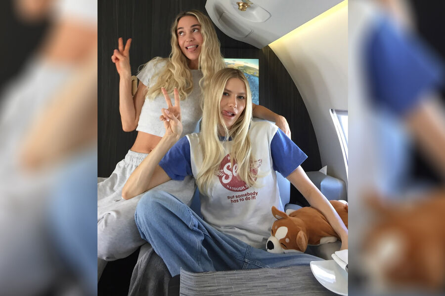 Модель с сестрой-визажисткой на частном самолете улетели на Ибицу. Девушки устроили фотосессию на борту, показав расслабленные образы с джинсами и джоггерами. При этом Елена Перминова и Александра Кириенко были без укладок и с нюдовым макияжем.
