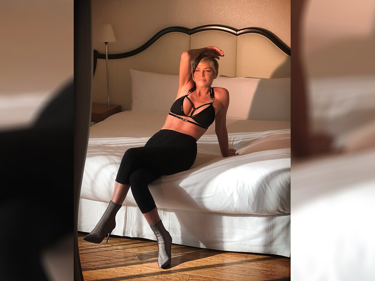 68-летняя Шэрон Стоун позировала перед камерой в черном бюстгальтере, который сочетала с легинсами в тон и ботильонами. Актриса снялась с уложенными волосами и макияжем с черными стрелками и розовой помадой. Знаменитость была запечатлена на кровати.