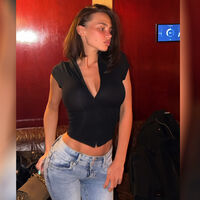 24-летняя Валя Карнавал была запечатлена с новой короткой стрижкой и без макияжа. Блогерша позировала перед камерой в черном облегающем топе с глубоким декольте, который дополнила голубыми джинсами на низкой посадке.