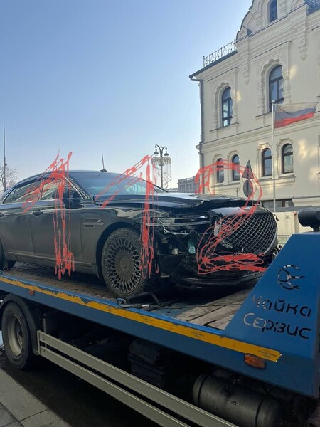 В Москве машина с правительственными номерами выбила другой автомобиль на тротуар