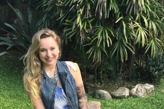 Женщина шьет одежду из выброшенных пластиковых стаканчиков
