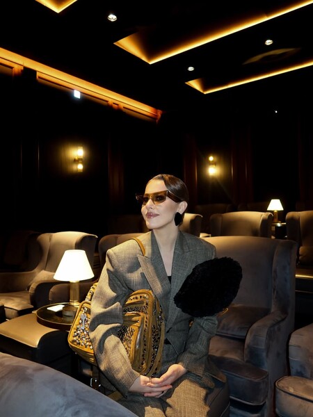 Ксения Собчак в костюме с гигантским помпоном снялась в кинотеатре
