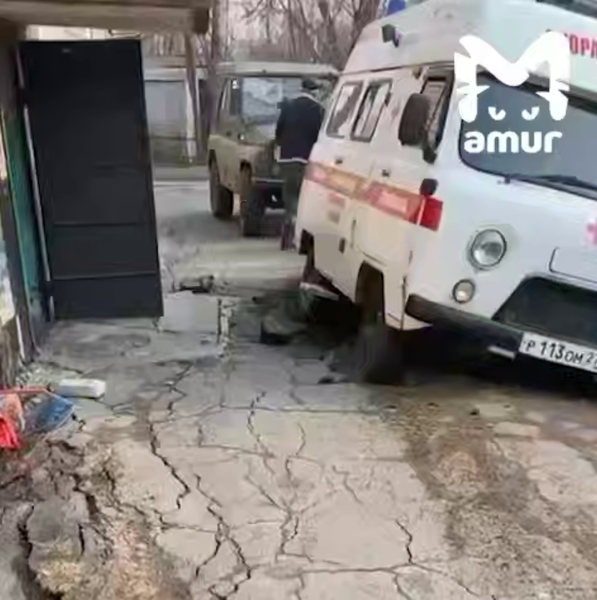 Скорая помощь провалилась во дворе российского многоквартирного дома
