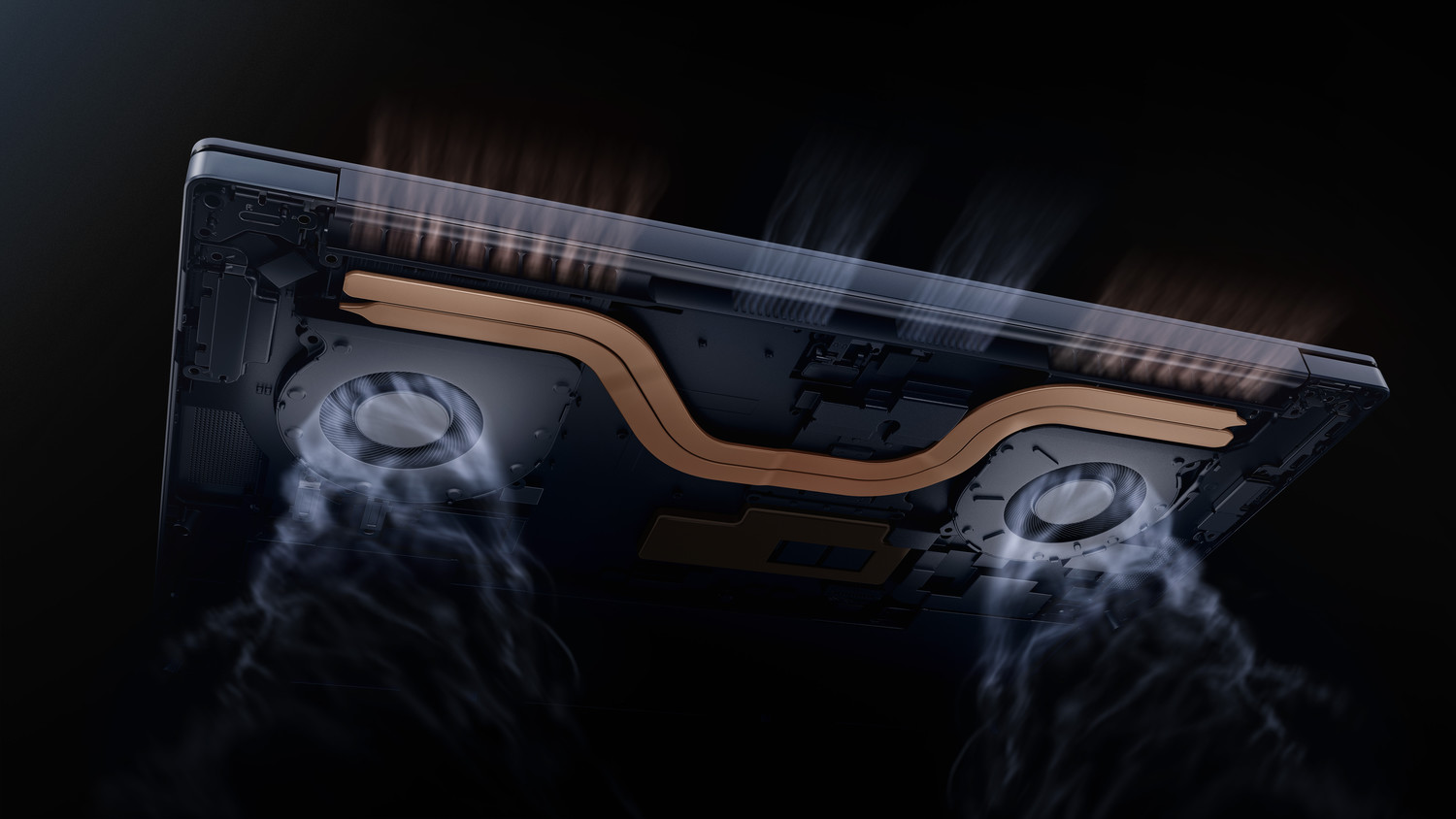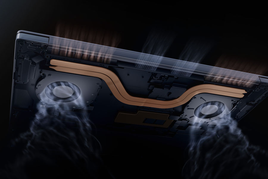 Ноутбук работает на базе энергоэффективного 7-нанометрового процессора AMD Ryzen™ 5800H, позволяющего выполнять одновременно множество задач. Чтобы устройство не перегревалось, его оснастили обновленной системой охлаждения Huawei Shark Fin. Два вентилятора диаметром более 75 мм (то есть почти с ладонь шириной) с лопастями в форме акульих плавников, воздухозаборник шарнирной конструкции и двойные тепловые трубки эффективно отводят горячий воздух от процессора. При этом, как уверяет производитель, устройство не шумит.
