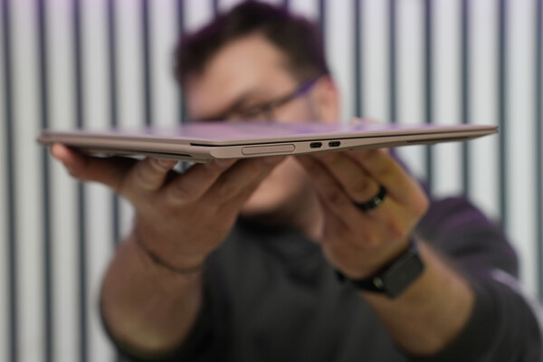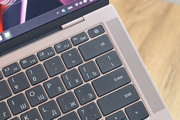 С точки зрения журналиста или контентмейкера, работающих зачастую вне офиса, — это привлекательные параметры, ведь ноутбук удобно держать даже одной рукой, в том числе благодаря грамотной развесовке компонентов. Отдельного внимания достоин цвет «пепельный розовый», который выделяет ноутбук на фоне нейтральных конкурентов в «металлических» цветах.