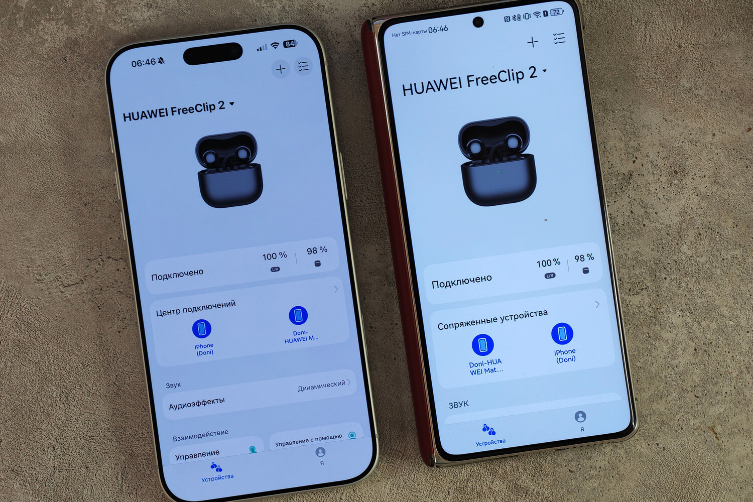 HUAWEI FreeClip 2 уверенно держатся в ухе даже во время бега и прыжках на скакалке. Однако при выпадении наушника музыка не останавливается, что упрощает поиск наушников. При этом их обычное снятие ставит воспроизведение на паузу.