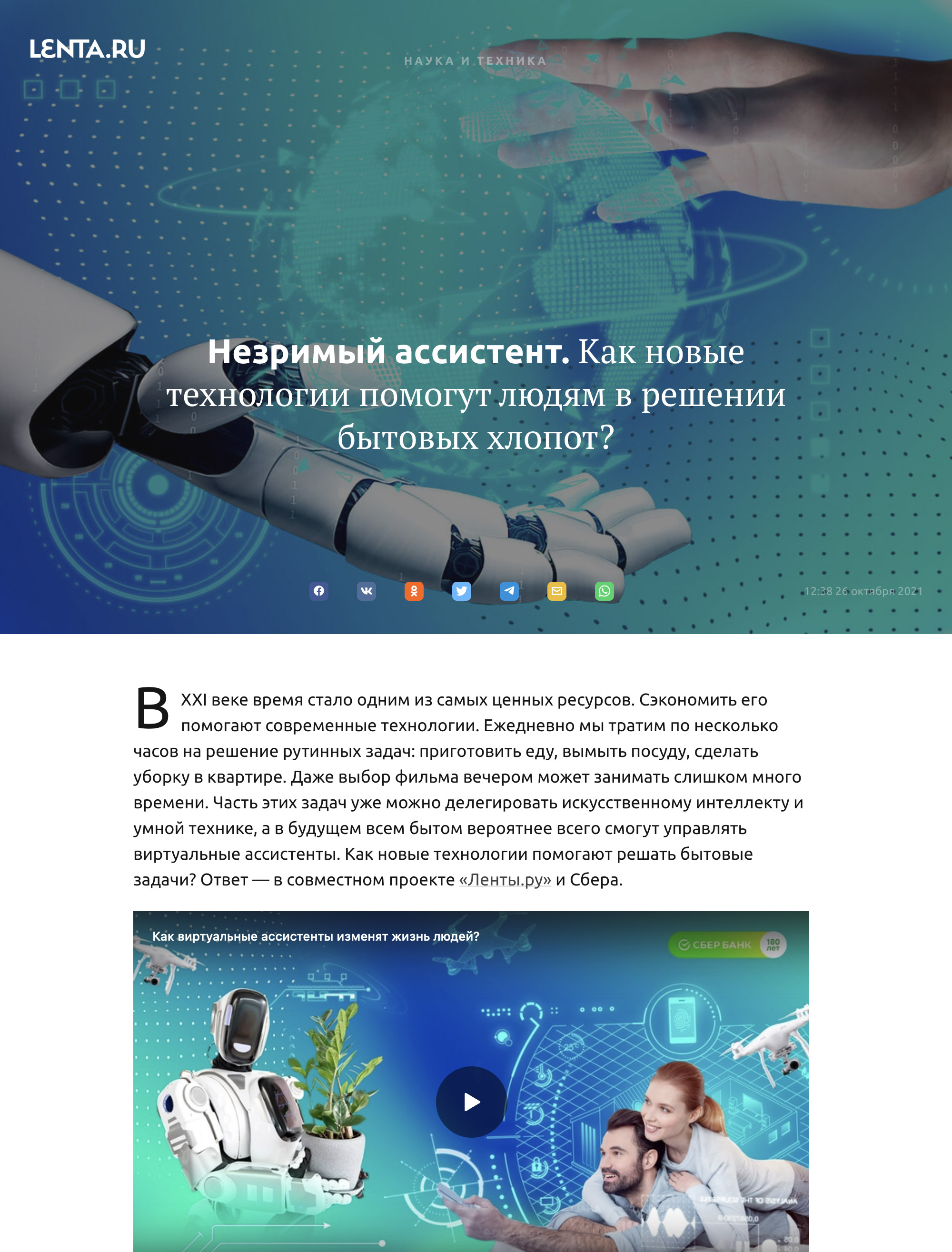 «Миллионы людей в нашей стране пользуются виртуальными ассистентами, созданными у нас в SberDevices, — подчеркнул Марков. — Эта технология прочно вошла в нашу жизнь, хотя и является очень и очень молодой. Виртуальные ассистенты становятся все более умными — их способности простираются сегодня уже далеко за пределы выполнения простых распоряжений человека».