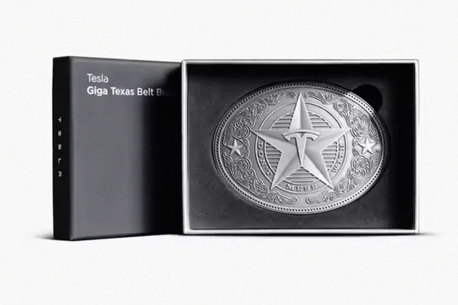 Выпуск аксессуара от Tesla связывают с завершением строительства техасского завода. На лицевой части пряжки выгравирована фраза «Не связывайся с Tesla», которая отсылает к популярной в штате фразе «Не связывайся с Техасом». Аксессуар для ремня изготовлен из отлитого под давлением цинка с отделкой из серебра.