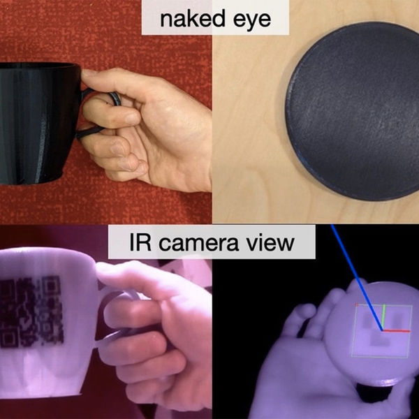 Метки наносятся на предметы с помощью 3D-печати, в качестве материала используются два вида пластика – прозрачный и непрозрачный в инфракрасном диапазоне.