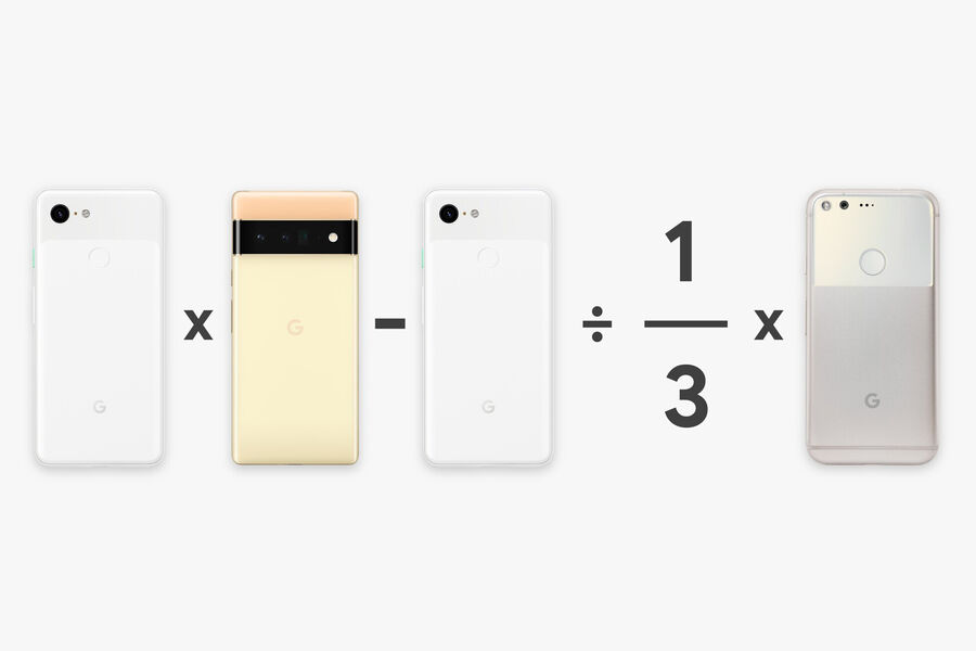 Головоломка представляет собой математический пример, в котором переменными выступают смартфоны Pixel. Если учесть, что на картинке изображены Pixel 3, Pixel 6 и самый первый Pixel, то пример выглядит следующим образом — 3 x 6 - 3 ÷ 1/3 x 1. В результате получается цифра 9.