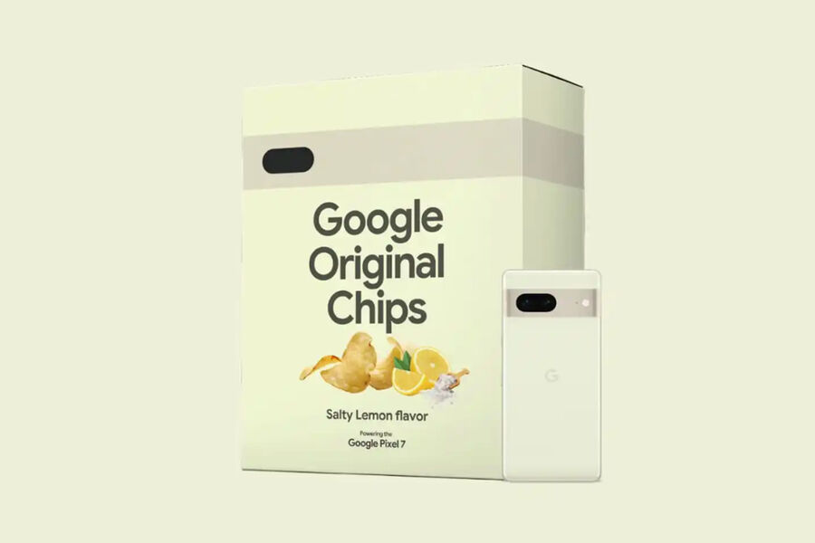 Кроме необычных «вкусов» чипсы получат еще и уникальную упаковку – снеки будут распространяться не в пакетах, а в коробках. Причем коробки будут оформлены под дизайн смартфонов. Так, «вкусы» «снежный сыр» и «ореховый лук» оформляются под Pixel 7 Pro, а «обсидиановый перец» и «соленый лимон» – под Pixel 7.