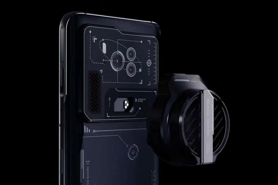 Компания опубликовала несколько видеороликов, на которых изображен концепт смартфона Black Shark 6. Судя по ним, новинка получит внешнюю систему охлаждения в формате подключаемого мини-кулера. Для модуля охлаждения под блоком камеры расположен специальный магнитный коннектор, а также отверстие в корпусе для доступа воздуха к материнской плате.