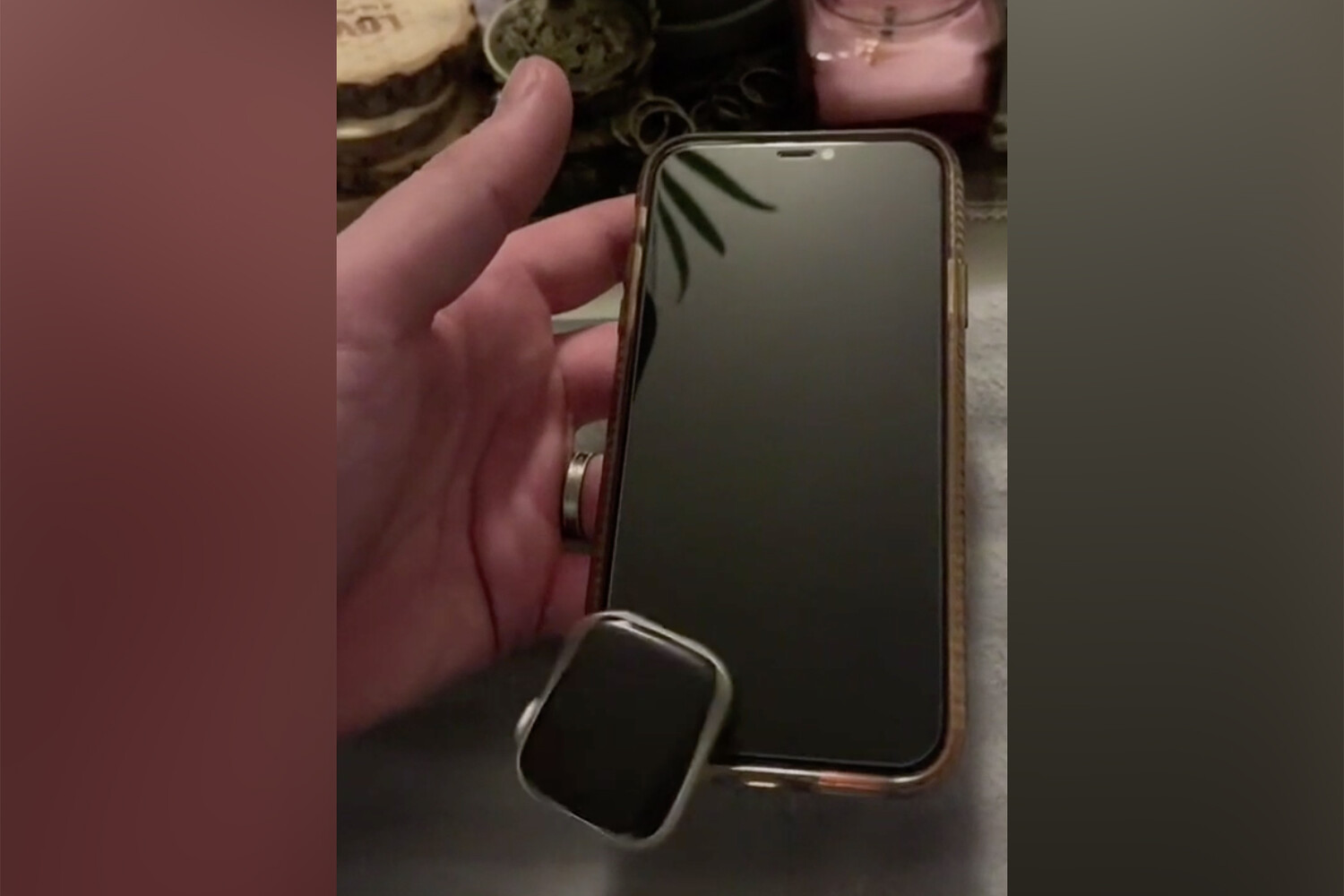На видео Apple Watch без ремешка как будто «приклеиваются» к краю iPhone и плавно передвигаются по его корпусу, при этом вращаясь. Сообщается, что такой эффект может возникать из-за металлической рамки смартфона и магнитов внутри корпуса смарт-часов.