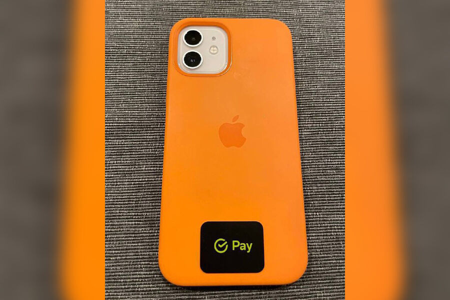 Стикер крепится к айфону и выглядит как обычная банковская карта, но в несколько раз меньше. Пользователю достаточно отломить часть, предназначенную для крепления, снять защитный слой и наклеить стикер на заднюю панель смартфона.