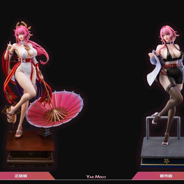 Фигурка выполнена в масштабе один к четырем и имеет две варианта исполнения. Версия А представляет собой Яэ Мико в ее стандартном наряде из игры, версия В – в более откровенном наряде с чулками. Также версии отличаются предметами, которые держит героиня: в первом случае у нее в руке находится зонтик, а во втором – магический жезл. Версия А имеет высоту 55 см, а версия В – 50 см.