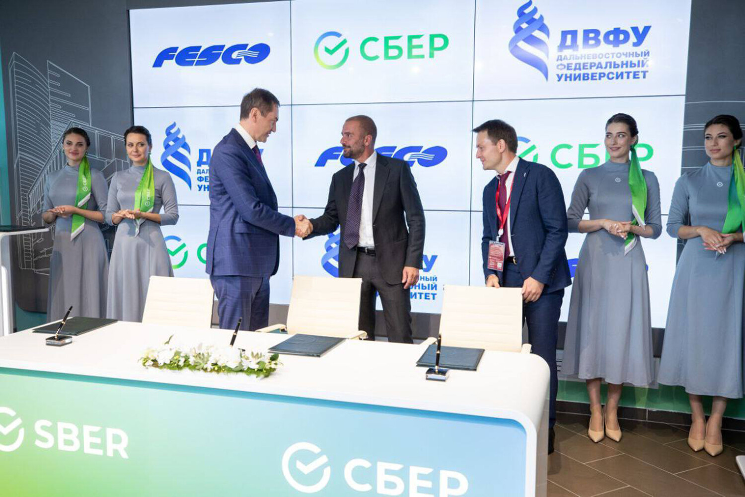 Сбер, Дальневосточный федеральный университет (ДВФУ) и транспортная группа FESCO подписали меморандум о сотрудничестве. Подписание состоялось в рамках VIII Восточного экономического форума (ВЭФ).