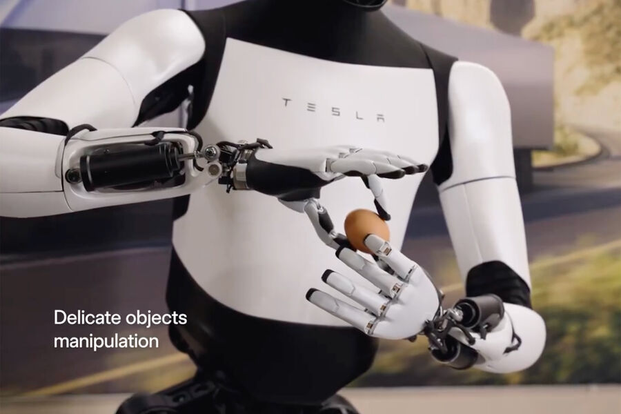 Человекоподобный робот Tesla сбросил 10 кг и научился обращаться с яйцами