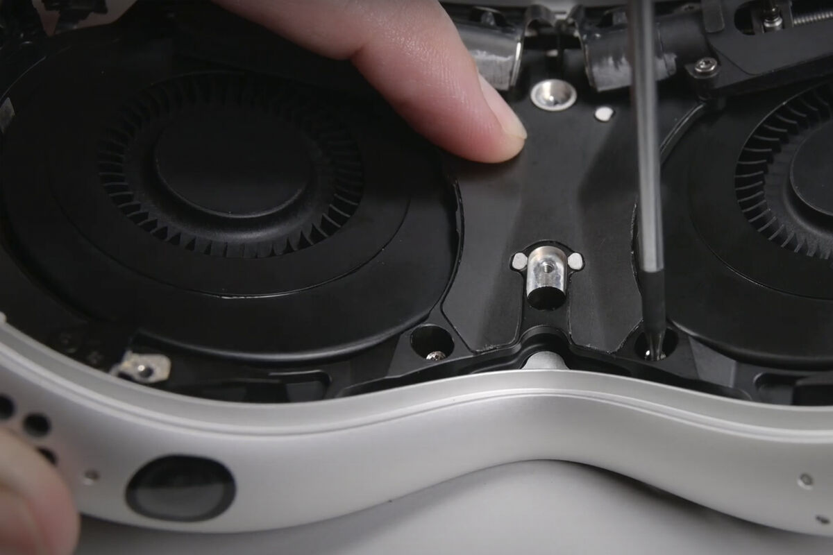 В ходе разборки Vision Pro, проведенной iFixit, можно увидеть много внутренних компонентов устройства, в том числе различные камеры и датчики, вентиляторы, моторы объективов и не только. Сложная конструкция устройства дает понять, что разобрать и починить его будет непросто.