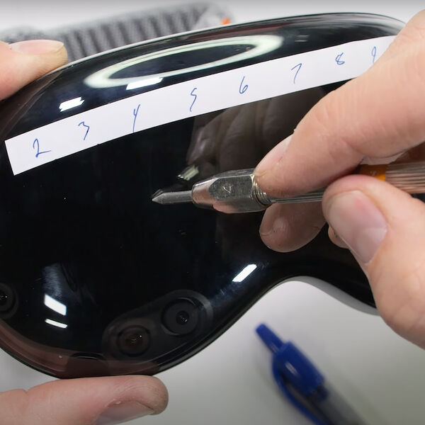 В тесте JerryRigEverything использует инструменты для определения твердости материалов по шкале Мооса. Царапины на передней панели Vision Pro начинают появляться уже при использовании инструмента с наконечником второго уровня твердости. При использовании инструмента четвертого уровня царапины стали более явными и глубокими. Для сравнения: у современных флагманских смартфонов царапины начинают проявляться на 5-6-м уровне.