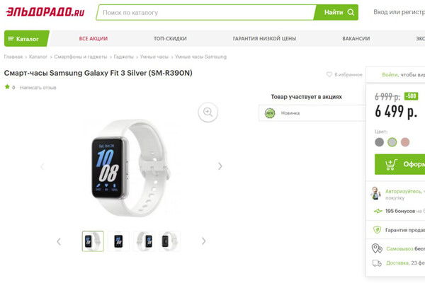 Например, в DNS, «М.Видео» и «Эльдорадо» уже можно предзаказать Galaxy Fit 3 за 6,5 или 7 тыс. руб. Во всех случаях часы предлагаются в трех цветовых исполнениях: белом, сером и розовом. Если верить описанию на страницах магазинов, старт продаж назначен на 22 февраля.