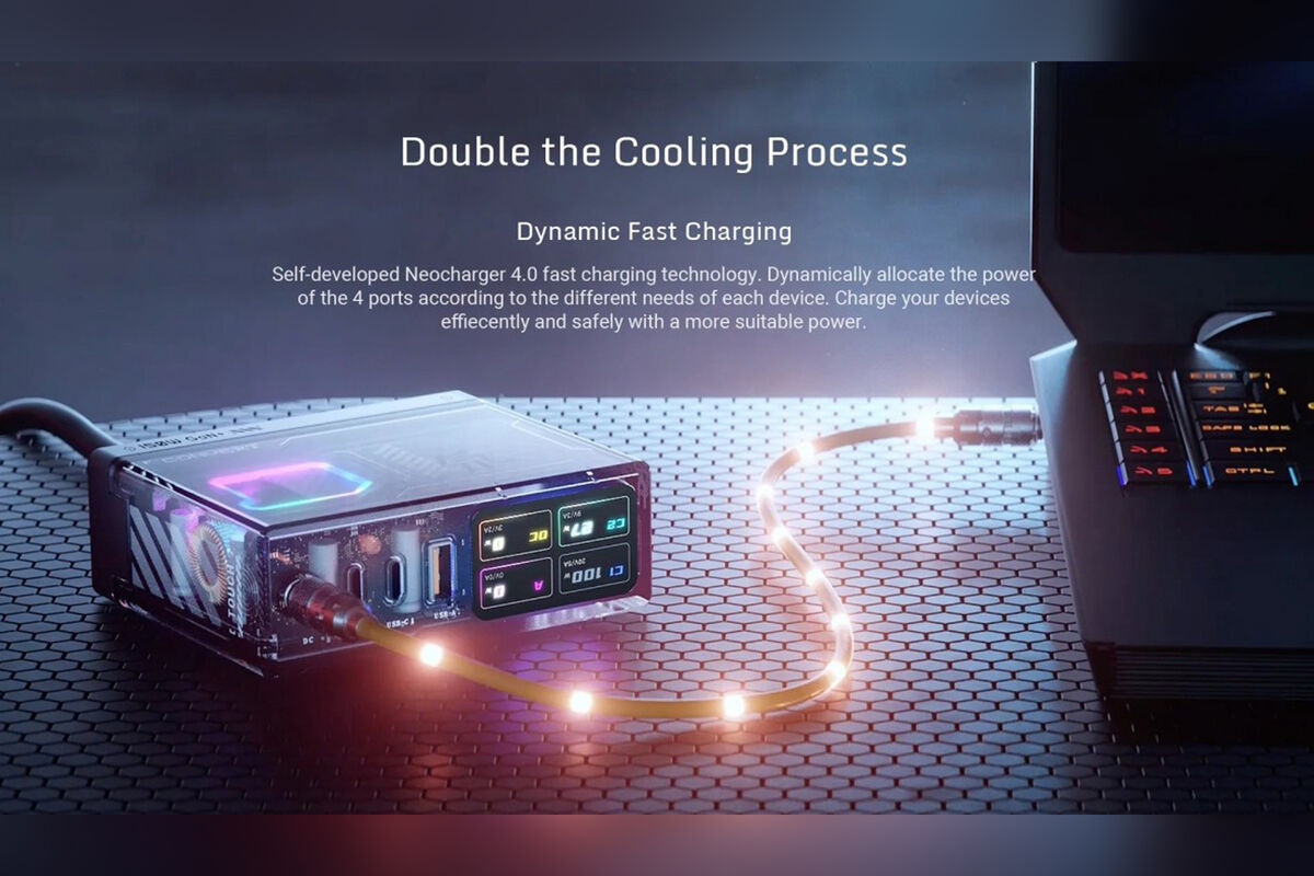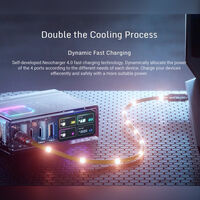 В прозрачную зарядку также поместили сенсорную кнопку и настраиваемый ЖК-дисплей, который показывает реальное состояние зарядки, входную и выходную мощность, разного рода анимацию и другие параметры. Пользователи могут подключиться к зарядке по Bluetooth для управления RGB-подсветкой и отслеживания состояния зарядки с каждого порта в режиме реального времени.