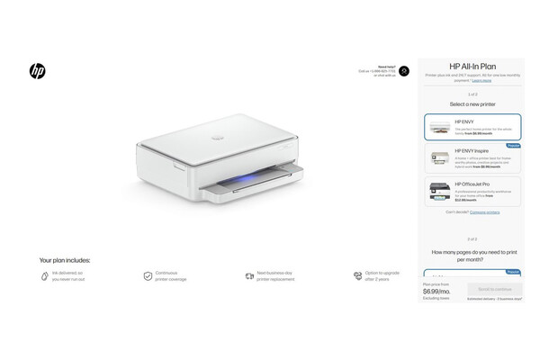 Компания HP объявила о новой системе распространения своих принтеров по подписке. Сервис All-In Plan включает в себя доставку принтера, предоставление бумаги картриджей с чернилами, гарантийное обслуживание, ремонт и возможность замены устройства через определенный период времени, а при отказе от услуги с клиента потребуют дополнительную плату, говорится на сайте производителя.