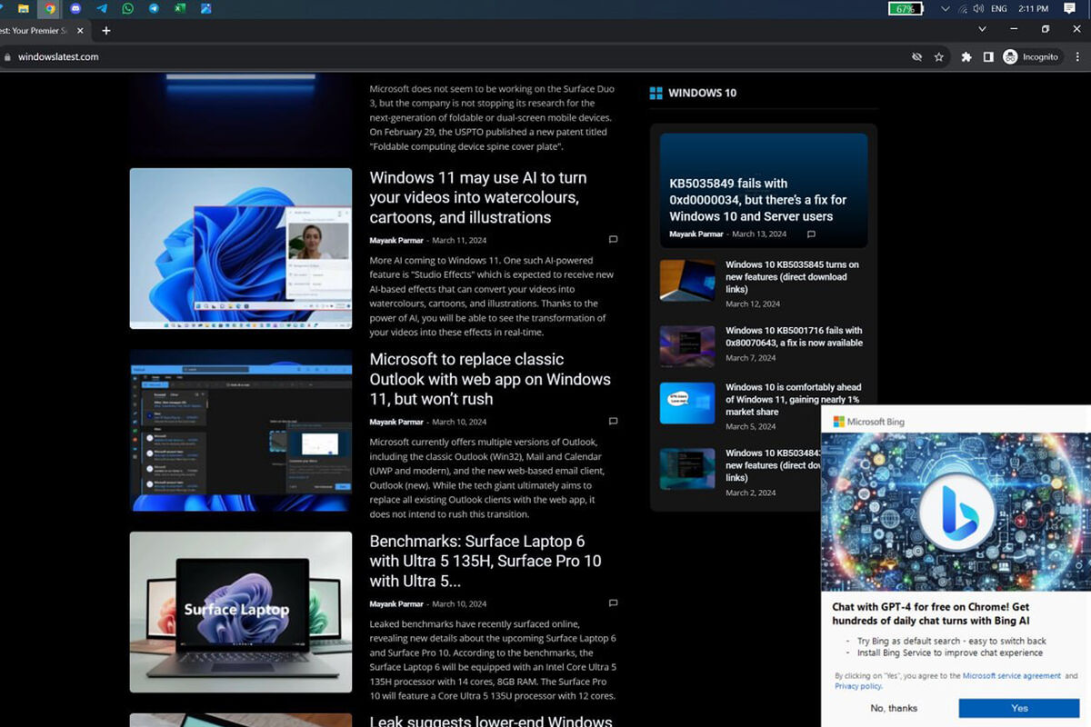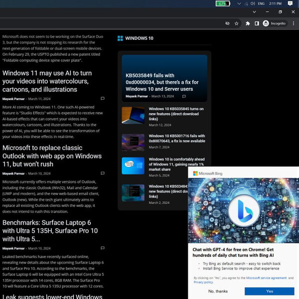 Пользователи браузера Google Chrome жалуются на новую рекламу Microsoft, направленную на продвижение поисковика Bing и чат-бота Copilot, работающего на базе GPT-4. Всплывающее окно занимает немалую часть экрана и активно призывает пользователя выбрать новый поисковик, сообщает портал Windows Latest.