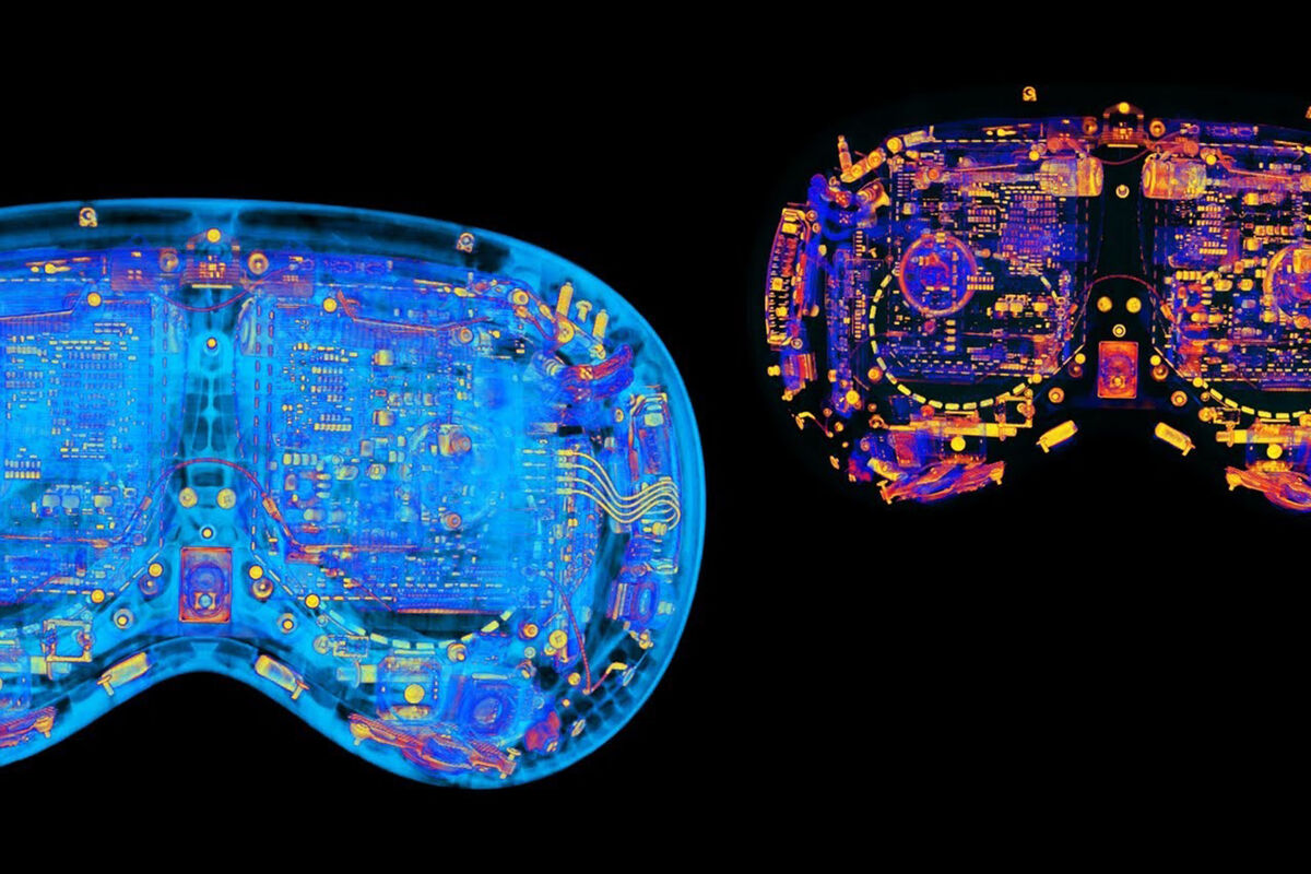 В первую очередь энтузиасты просканировали Apple Vision Pro‌. Они обратили внимание на эффективное использование пространства внутри корпуса. Например, гибкая лента печатной платы и электроника устройства расположены под разными углами, что контрастирует с более традиционным подходом к проектированию в Meta Quest Pro и Quest 3.