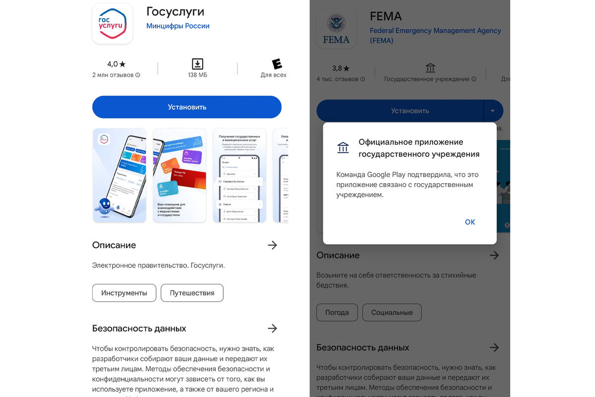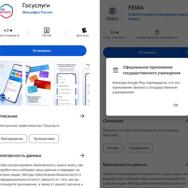 На данный момент нововведение заработало для правительственных приложений в Австралии, Бразилии, Великобритании, Германии, Индии, Индонезии, Канаде, Мексике, США, Франции, Южной Корее и Японии. Соответствующую отметку можно найти в приложениях NASA, FEMA, IRS2Go и других. При этом для российских приложений такой отметки нет. Заработает ли данная функция для отечественных приложений, не уточняется.