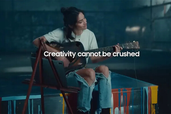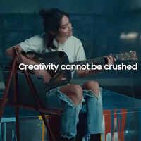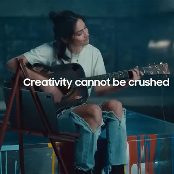 В ответном ролике Samsung показана девушка, которая проходит мимо разрушенных предметов в локации, похожей на ту, что использовалась в рекламе Apple, и обнаруживает поврежденную гитару. Она использует Galaxy Tab S9 в качестве нотного стана и начинает играть на гитаре под надпись на экране: «Творчество невозможно раздавить».