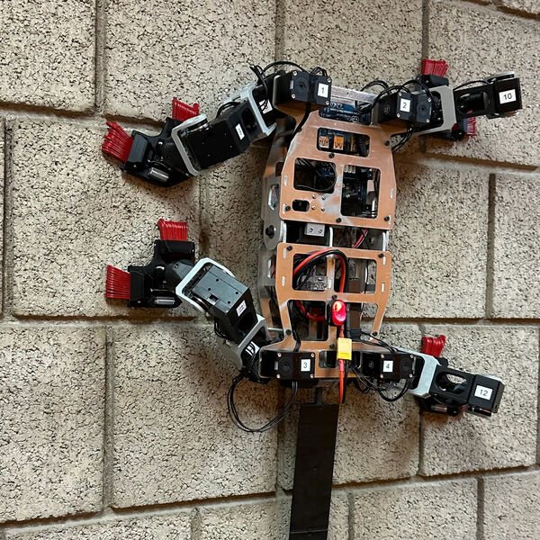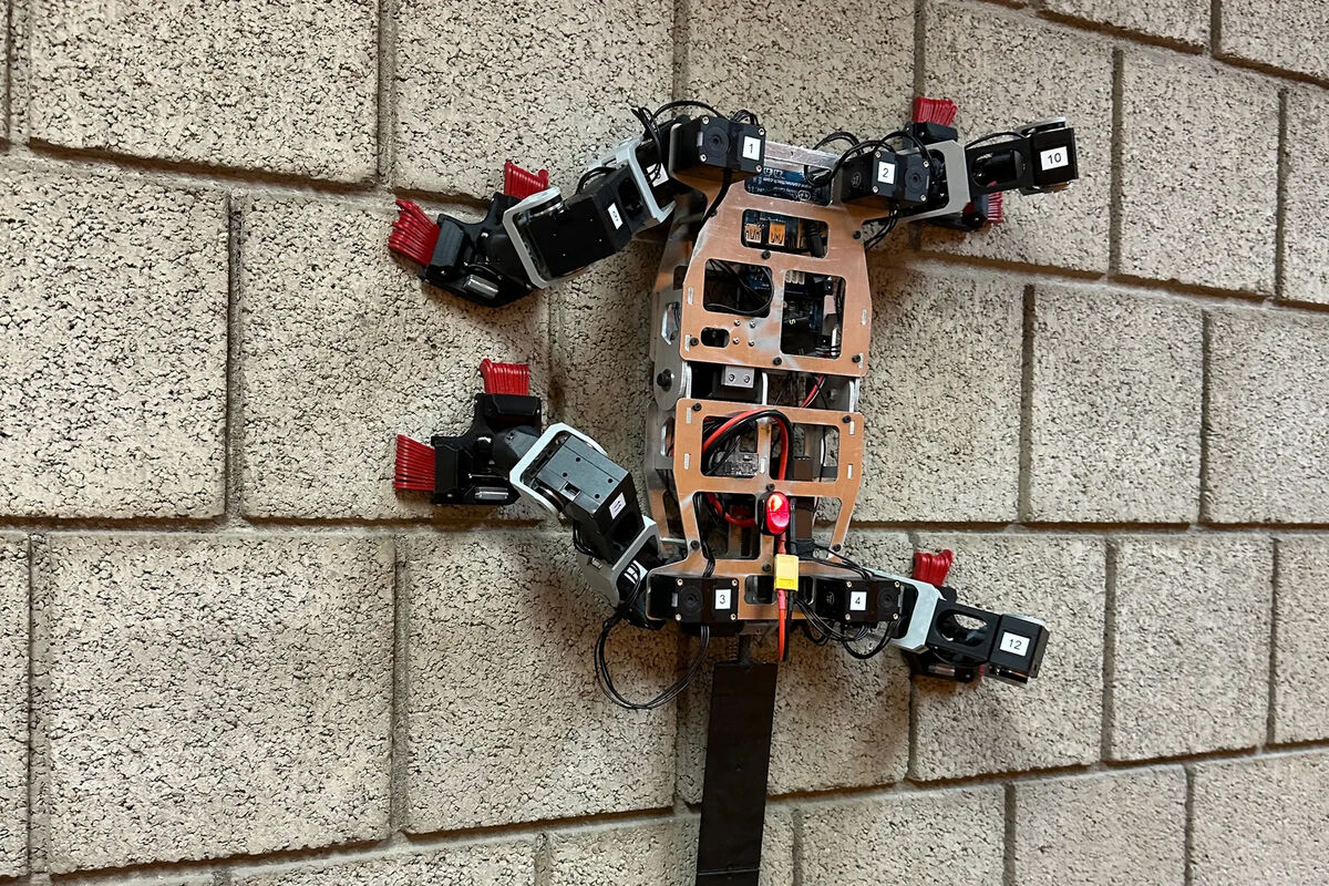 Каждая из четырех ног робота имеет разветвленный микроспинный захват, состоящий из двух групп шипов, расположенных под прямым углом друг к другу. Захват соединен с ногой пассивным лучезапястным суставом, что позволяет ему просто болтаться в воздухе и активно реагировать на движения ноги. Это также значительно снижает вес робота.